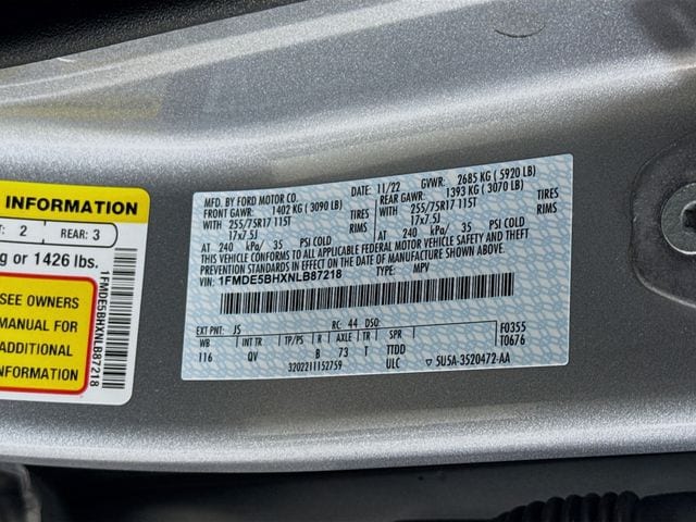 ⢠6 Speakers, AM/FM radio: SiriusXM with 360L, SYNC 4, Air Conditioning, Power steering, Power windows, Remote keyless entry, Steering wheel mounted audio controls, Traction control, 4-Wheel Disc Brakes, ABS brakes, Dual front impact airbags, Dual front side impact airbags, Emergency communication system: 911 Assist, Front anti-roll bar, Front wheel independent suspension, Integrated roll-over protection, Low tire pressure warning, Occupant sensing airbag, Overhead airbag, Brake assist, Electronic Stability Control, Exterior Parking Camera Rear, Auto High-beam Headlights, Delay-off headlights, Fully automatic headlights, Panic alarm, Security system, Speed control, Heated door mirrors, Power door mirrors, Compass, Driver door bin, Driver vanity mirror, Front reading lights, Illuminated entry, Outside temperature display, Overhead console, Passenger vanity mirror, Tachometer, Telescoping steering wheel, Tilt steering wheel, Trip computer, Front Bucket Seats, Front Center Armrest, Split folding rear seat, Passenger door bin, Wheels: 17" Carbonized Gray-Painted Aluminum, Variably intermittent wipers, 3.73 Axle Ratio