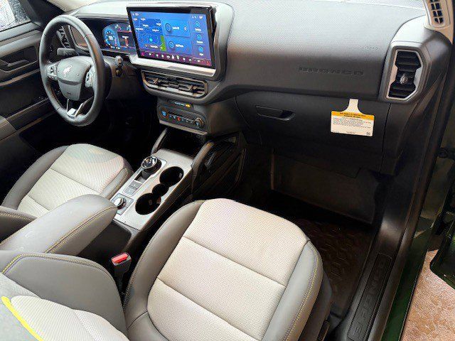 I got a 2025 Big Bend with the black diamond off road package. The steel modular front and rear in combination with bush guard gives this year model. A very aggressive off road look. With the ability to easily mount accessories and power them with the factory installed auxiliary switches. Hitch receiver seamlessly mounted into the rear steel bumper flanked by some very chunky recovery points. The upgraded aluminum rims wrapped with Continental all-terrains. It make this the most capable bronco sport yet. The interior of the 2025 has been updated with a new 13 inch touchscreen with Android Auto and apple car play. The lines of the dash flow elegantly from the new infotainment screen to the new all digital 12 inch gauge chaster. Toggling through the different modes on the gauge chaster is very intuitive, and all the displays are laid out very cleanly. Moving from gauge chaster the center storage cubby just below the infotainment screen there is a wireless charger and USB/ USB-c ports. The passenger side of that same cubby gets a handle and a matching one on the roof just in case the driver bucks a little too much. The passenger also gets a mesh storage area. That leads us to the fact this vehicle has tons of storage options all throughout. You have pockets on the sides of the front two seat big enough for the latest new phones. Very generous door storage on all four doors plus huge glove box and center console with 12 volt outlet. The back side of the center console has air vents and another 12 volt outlet plus a 110 outlet. Now getting to the cargo area it is massive for a crossover SUV. With off road package you get a cargo management system and a very nice rubber mat. Under that there is a full size tire plus scissor jack and funnel to use with the capless filler system. On the liftgate there isa pair of very bright led lights turned on with a switch in the cargo area. This feature packed vehicle has tons awesome gadgets and hidden a little homages I spend all day just talk that. At the end of the day it is car. So how does it drive. It is wonderful, the steering and pedal response is beautiful. Rides very smooth and little to no road noise going down the highway. The active cruise control and co-pilot 360 have been very handy. The car literally drives itself most of the time. There is not enough good things I could same about this car. I love it and you pick one too. You will see what I mean. - 5.0