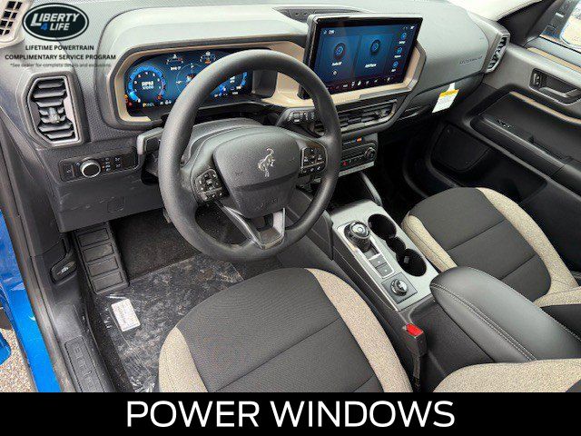 I got a 2025 Big Bend with the black diamond off road package. The steel modular front and rear in combination with bush guard gives this year model. A very aggressive off road look. With the ability to easily mount accessories and power them with the factory installed auxiliary switches. Hitch receiver seamlessly mounted into the rear steel bumper flanked by some very chunky recovery points. The upgraded aluminum rims wrapped with Continental all-terrains. It make this the most capable bronco sport yet. The interior of the 2025 has been updated with a new 13 inch touchscreen with Android Auto and apple car play. The lines of the dash flow elegantly from the new infotainment screen to the new all digital 12 inch gauge chaster. Toggling through the different modes on the gauge chaster is very intuitive, and all the displays are laid out very cleanly. Moving from gauge chaster the center storage cubby just below the infotainment screen there is a wireless charger and USB/ USB-c ports. The passenger side of that same cubby gets a handle and a matching one on the roof just in case the driver bucks a little too much. The passenger also gets a mesh storage area. That leads us to the fact this vehicle has tons of storage options all throughout. You have pockets on the sides of the front two seat big enough for the latest new phones. Very generous door storage on all four doors plus huge glove box and center console with 12 volt outlet. The back side of the center console has air vents and another 12 volt outlet plus a 110 outlet. Now getting to the cargo area it is massive for a crossover SUV. With off road package you get a cargo management system and a very nice rubber mat. Under that there is a full size tire plus scissor jack and funnel to use with the capless filler system. On the liftgate there isa pair of very bright led lights turned on with a switch in the cargo area. This feature packed vehicle has tons awesome gadgets and hidden a little homages I spend all day just talk that. At the end of the day it is car. So how does it drive. It is wonderful, the steering and pedal response is beautiful. Rides very smooth and little to no road noise going down the highway. The active cruise control and co-pilot 360 have been very handy. The car literally drives itself most of the time. There is not enough good things I could same about this car. I love it and you pick one too. You will see what I mean. - 5.0