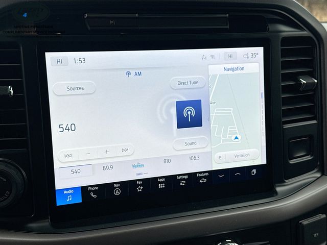 The cabin of this F-150 is packed with premium amenities, including dual-zone electronic automatic temperature control, a power-sliding rear window, and heated front seats. The SYNC 4 infotainment system with enhanced voice recognition keeps you connected and in control, while the 360-degree camera and advanced driver-assist technologies, such as Adaptive Cruise Control and Evasive Steering Assist, provide added peace of mind on the road.