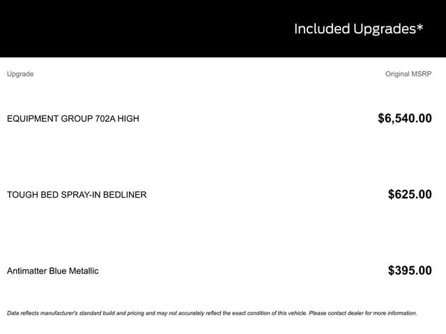 The stunning Antimatter Blue Metallic exterior is complemented by a host of premium features, including the Tough Bed Spray-In Bedliner, the cutting-edge Heads-Up Display, and the renowned B&O Unleashed Sound System by Bang & Olufsen. The twin-panel moonroof and the Internet access-capable FordPass Connect 5G further enhance your driving enjoyment.