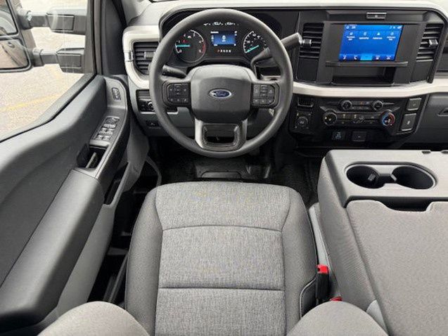 Designed with your needs in mind, the F-350SD offers a spacious and well-appointed interior, featuring a 40/20/40 split bench seat with a center armrest and storage. The power-sliding rear window and remote start system add convenience, while the upfitter switches in the overhead console allow you to easily integrate additional equipment and accessories.