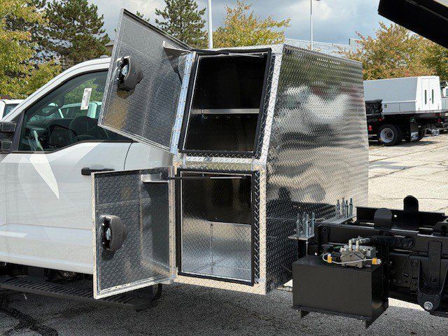 This 2026 Ford F-550 XL Diesel 4x4 is built for heavy-duty performance with a 9-foot stainless steel dump body and a PTO hoist for reliable operation on any job site. It features a rear hitch plate setup, aluminum backpack toolbox, manual tarp system, and a rear backup camera for enhanced safety and convenience. Powered by a strong diesel engine and a 4x4 drivetrain, this truck offers a 19,550-pound GVWR and rides on durable 19.5-inch wheels. Power windows, locks, and mirrors add comfort and functionality for everyday work use.