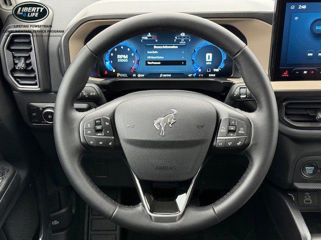 I got a 2025 Big Bend with the black diamond off road package. The steel modular front and rear in combination with bush guard gives this year model. A very aggressive off road look. With the ability to easily mount accessories and power them with the factory installed auxiliary switches. Hitch receiver seamlessly mounted into the rear steel bumper flanked by some very chunky recovery points. The upgraded aluminum rims wrapped with Continental all-terrains. It make this the most capable bronco sport yet. The interior of the 2025 has been updated with a new 13 inch touchscreen with Android Auto and apple car play. The lines of the dash flow elegantly from the new infotainment screen to the new all digital 12 inch gauge chaster. Toggling through the different modes on the gauge chaster is very intuitive, and all the displays are laid out very cleanly. Moving from gauge chaster the center storage cubby just below the infotainment screen there is a wireless charger and USB/ USB-c ports. The passenger side of that same cubby gets a handle and a matching one on the roof just in case the driver bucks a little too much. The passenger also gets a mesh storage area. That leads us to the fact this vehicle has tons of storage options all throughout. You have pockets on the sides of the front two seat big enough for the latest new phones. Very generous door storage on all four doors plus huge glove box and center console with 12 volt outlet. The back side of the center console has air vents and another 12 volt outlet plus a 110 outlet. Now getting to the cargo area it is massive for a crossover SUV. With off road package you get a cargo management system and a very nice rubber mat. Under that there is a full size tire plus scissor jack and funnel to use with the capless filler system. On the liftgate there isa pair of very bright led lights turned on with a switch in the cargo area. This feature packed vehicle has tons awesome gadgets and hidden a little homages I spend all day just talk that. At the end of the day it is car. So how does it drive. It is wonderful, the steering and pedal response is beautiful. Rides very smooth and little to no road noise going down the highway. The active cruise control and co-pilot 360 have been very handy. The car literally drives itself most of the time. There is not enough good things I could same about this car. I love it and you pick one too. You will see what I mean. - 5.0