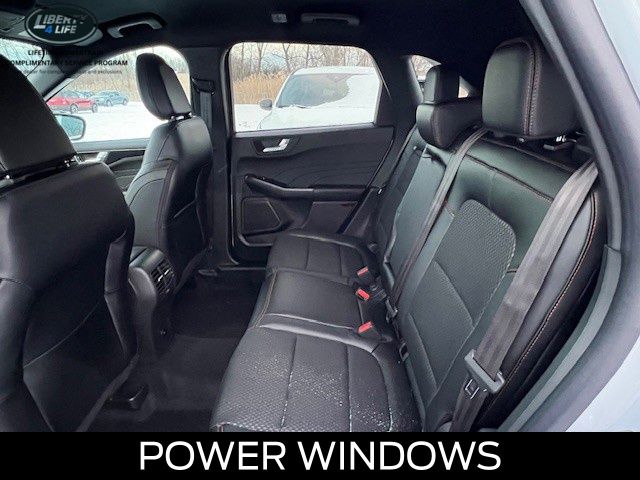 The exterior of this Escape ST-Line is dressed in a sleek Silver color, complemented by the bold ST-Line styling cues and 18-inch Rock Metallic Painted Aluminum wheels. Step inside, and you'll be greeted by a spacious and well-appointed cabin featuring Partial Vinyl/Cloth Front Sport Contour Bucket Seats with Red Stitching, a 13.2-inch LCD capacitive touch-screen, and a host of advanced technologies, including wireless Apple CarPlay and Android Auto.