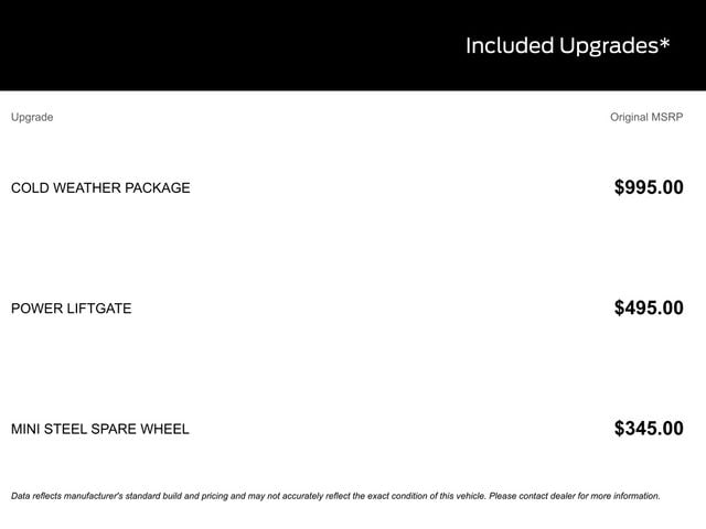 BACK UP CAMERA, BLUETOOTH, HEATED SEATS, REMOTE START, CRUISE CONTROL, POWER WINDOWS, POWER LOCKS, MULTI-ZONE CLIMATE CONTROL, STEERING WHEEL CONTROLS, AWD / 4WD, LANE DEPARTURE WARNING, LANE KEEP ASSIST, APPLE CARPLAY, ANDROID AUTO, FORD SYNC, AUTOMATIC EMERGENCY BRAKING, FORWARD COLLISION WARNING, REAR CROSS TRAFFIC WARNING, AWD, 3.81 Axle Ratio, 4-Way Manual Front Passenger Seat, 8-Way Power Driver Seat, Cold Weather Package, Equipment Group 300A, Ford App, Heated Front Row Seats, Heated Sideview Mirrors, Heated Steering Wheel, Partial Vinyl/Cloth Front Sport Contour Bucket Seats with Red Stitching, Power Liftgate, Radio: AM/FM Stereo with SiriusXM 360L, Remote Starter System, SYNC 4, Wheels: 18" Rock Metallic Painted Aluminum. 26/32 City/Highway MPG