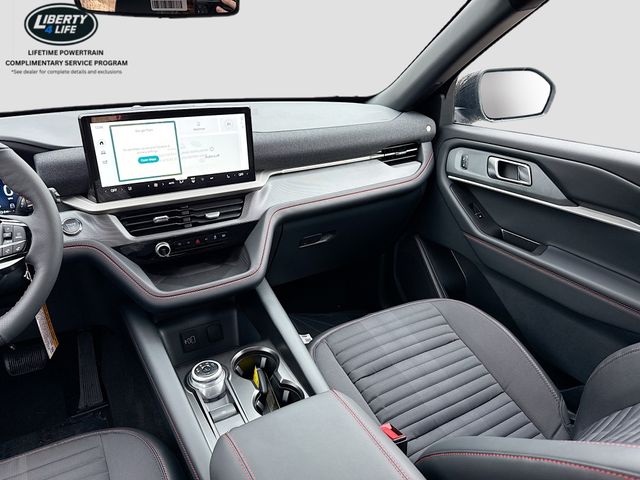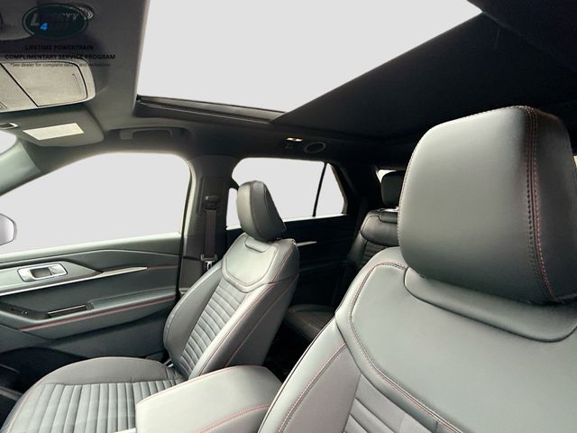 The Explorer ST-Line is packed with premium amenities, including a Panoramic Fixed Glass Roof with Power Shade, remote control front windows, and the ST-Line Street Pack featuring 21" Magnetite-Painted Aluminum wheels, Performance Brakes, and Red Painted Brake Calipers. The Premium Package adds even more luxury, with features like a 110V/150W AC Power Outlet, Auto-Dimming Interior Rearview Mirror, Memory Driver's Seat, Rain-Sensing Wipers, and Ambient Lighting.