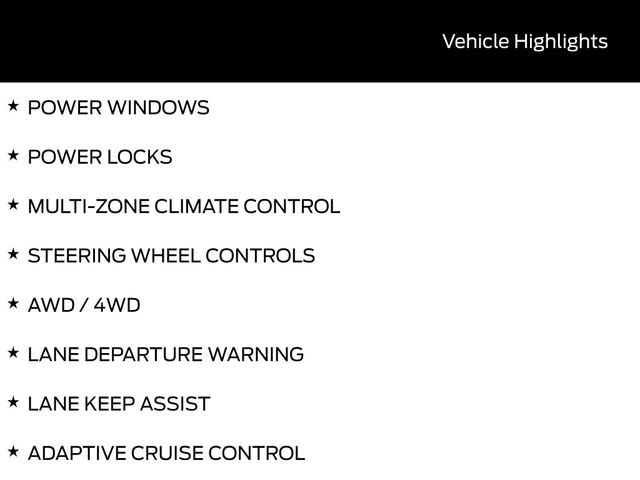 SUNROOF / MOONROOF, BACK UP CAMERA, BLUETOOTH, HEATED SEATS, TOW PACKAGE / TRAILER HITCH, 3RD ROW SEATS, REMOTE START, CRUISE CONTROL, POWER WINDOWS, POWER LOCKS, MULTI-ZONE CLIMATE CONTROL, STEERING WHEEL CONTROLS, AWD / 4WD, LANE DEPARTURE WARNING, LANE KEEP ASSIST, ADAPTIVE CRUISE CONTROL, APPLE CARPLAY, ANDROID AUTO, FORD SYNC, AUTOMATIC EMERGENCY BRAKING, FORWARD COLLISION WARNING, REAR CROSS TRAFFIC WARNING, 4WD, 110V/150W AC Power Outlet, 2nd Row Heated Seats, Ambient Lighting, Auto-Dimming Interior Rear-View Mirror, Equipment Group 300A Standard Package, Heated Unique Cloth Captain's Chairs, Manual-Folding Sideview Mirrors, Memory Driver's Seat, Performance Brakes, Premium Package, Radio: B&O Sound System by Bang and Olufsen, Rain-Sensing Wipers (front Only), Red Painted Performance Front and Rear Brake Calipers, ST-Line Street Pack, Wheels: 20" Ebony-Painted Machined Aluminum, Wheels: 21" Magnetite-Painted Aluminum. 20/27 City/Highway MPG