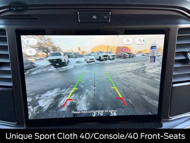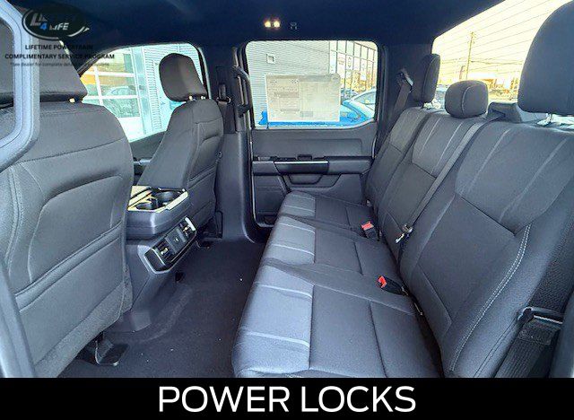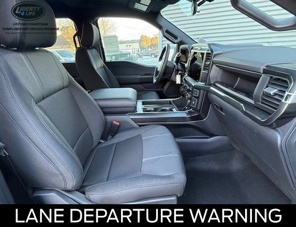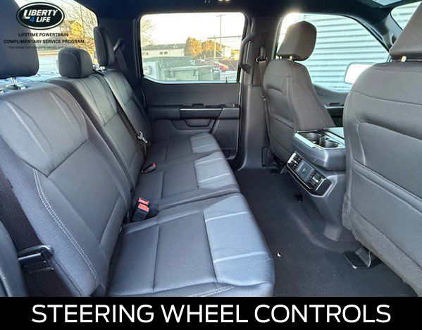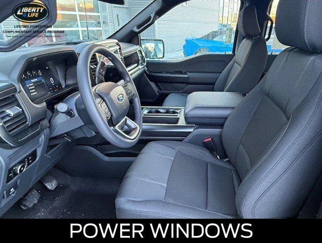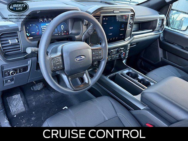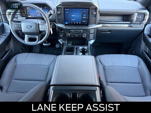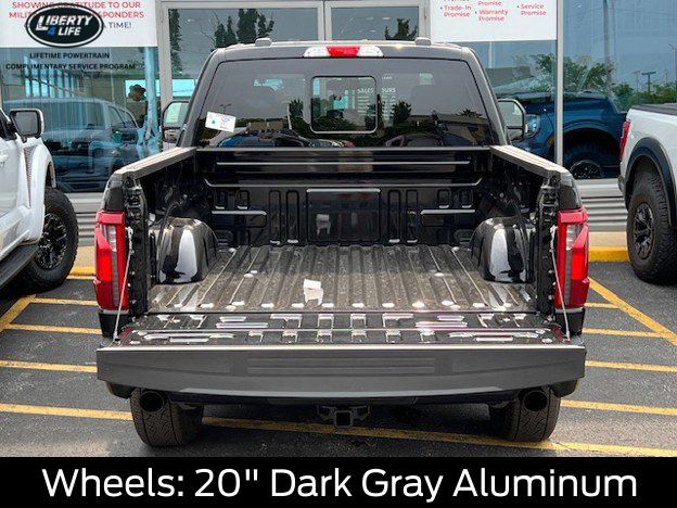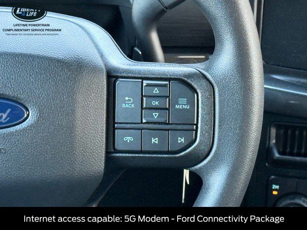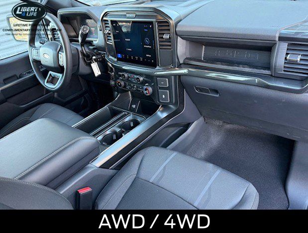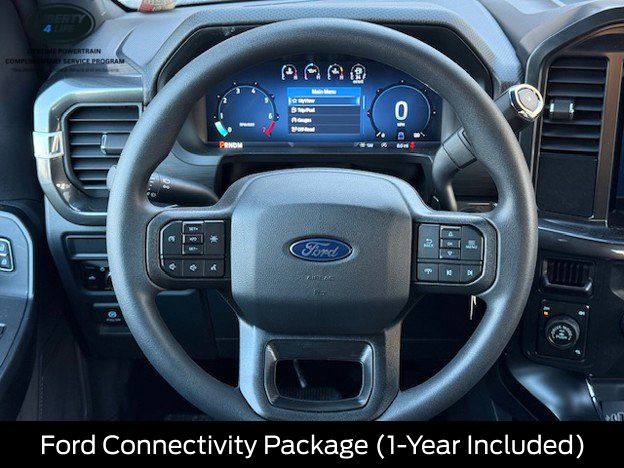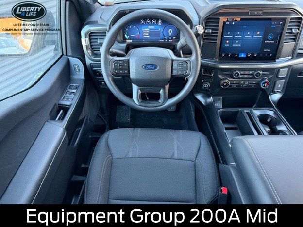 The exterior of this F-150 STX is dressed in a sleek and bold black finish, complemented by 20-inch dark gray aluminum wheels that give it a rugged and sophisticated appearance. The LED fog lamps with cornering lamps provide enhanced visibility, while the 12-inch cluster display keeps you informed and in control.