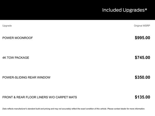 Although every reasonable effort has been made to ensure the accuracy of the information contained on this site, absolute accuracy cannot be guaranteed. This site, and all information and materials appearing on it, are presented to the user "as is" without warranty of any kind, either express or implied. All vehicles are subject to prior sale. Price does not include applicable tax, title, license, and/or $398 documentary service fee.â¡ All titling is subject to a minimum $18 processing fee (varies by County). Vehicles shown at different locations are not currently in our inventory (Not in Stock) but can be made available to you at our location within a reasonable date from the time of your request, not to exceed one week. See dealer for complete details and exclusions on the Liberty 4 Life Program. *Disclaimer: The information provided regarding vehicle options and original MSRP is sourced from third-party data providers. While every effort has been made to ensure the accuracy of the information provided here, the dealer shall not be held liable for any inaccuracies in the options or original vehicle and option pricing. It is strongly advised to consult with the dealer for verification and comprehensive details prior to making a purchase.