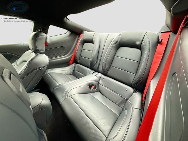 Designed to turn heads, the Mustang GT Premium's sleek black exterior is complemented by the stunning red painted brake calipers with white logos. The 20-inch premium-painted aluminum wheels and Brembo brake system with performance linings ensure exceptional handling and braking performance.