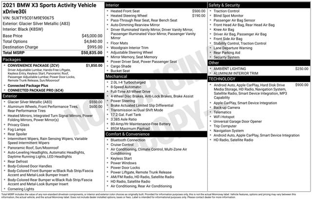 At our dealership, we pride ourselves on delivering an exceptional customer experience. Our knowledgeable team is here to answer any questions you may have and help you find the perfect vehicle to suit your lifestyle. We invite you to schedule a test drive and experience the exceptional quality and performance of this 2021 BMW X3 xDrive30i.