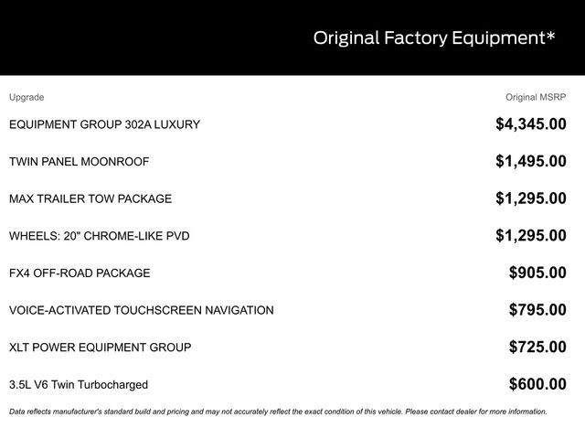 - Power-Sliding Rear Window - FX4 Off-Road Package - MAX Trailer Tow Package - XLT Chrome Appearance Package - XLT Power Equipment Group
