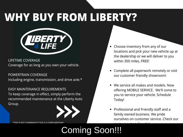 Although every reasonable effort has been made to ensure the accuracy of the information contained on this site, absolute accuracy cannot be guaranteed. This site, and all information and materials appearing on it, are presented to the user "as is" without warranty of any kind, either express or implied. All vehicles are subject to prior sale. Price does not include applicable tax, title, license, and/or $398 documentary service fee.‡ All titling is subject to a minimum $18 processing fee (varies by County). Vehicles shown at different locations are not currently in our inventory (Not in Stock) but can be made available to you at our location within a reasonable time fromyour request, not to exceed one week. See dealer for complete details and exclusions on the Liberty 4 Life Program.