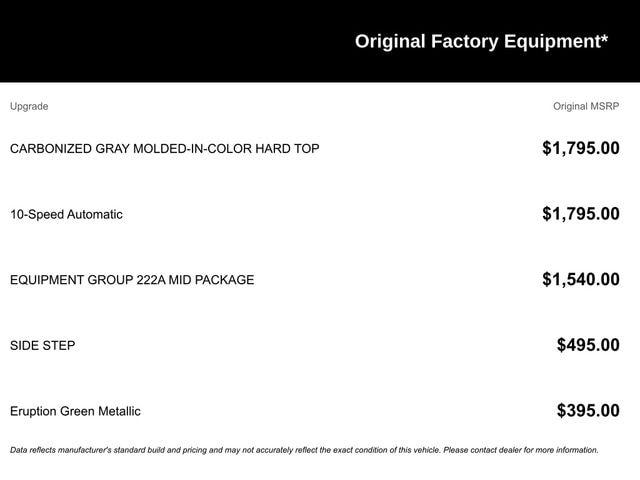 Although every reasonable effort has been made to ensure the accuracy of the information contained on this site, absolute accuracy cannot be guaranteed. This site, and all information and materials appearing on it, are presented to the user "as is" without warranty of any kind, either express or implied. All vehicles are subject to prior sale. Price does not include applicable tax, title, license, and/or $398 documentary service fee.â¡ All titling is subject to a minimum $18 processing fee (varies by County). Vehicles shown at different locations are not currently in our inventory (Not in Stock) but can be made available to you at our location within a reasonable date from the time of your request, not to exceed one week. See dealer for complete details and exclusions on the Liberty 4 Life Program. *Disclaimer: The information provided regarding vehicle options and original MSRP is sourced from third-party data providers. While every effort has been made to ensure the accuracy of the information provided here, the dealer shall not be held liable for any inaccuracies in the options or original vehicle and option pricing. It is strongly advised to consult with the dealer for verification and comprehensive details prior to making a purchase.
